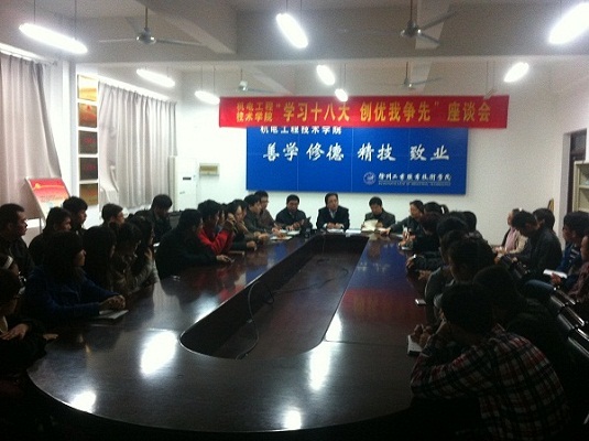 11月8日上午9点整,中国共产党第十八次全国代表大会在北京开幕。机电学院党政领导、各党支部书记以及师生党员代表和入党积极分子齐聚B17-307会议室,召开了“学习党的十八大,创优我争先”主题座谈会。