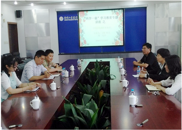 5月24日下午,学工支部 “两学一做”学习教育专题讲座之“学党章党规基本知识”在行政楼三楼会议室开展,由支部书记周树会主讲。