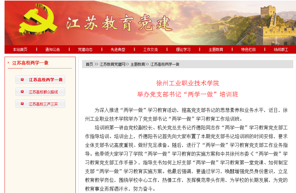为深入推进“两学一做”学习教育,提高党支部书记的思想素养和业务水平,近日,徐州工业职业技术学院举办了党支部书记“两学一做”学习教育工作培训班。