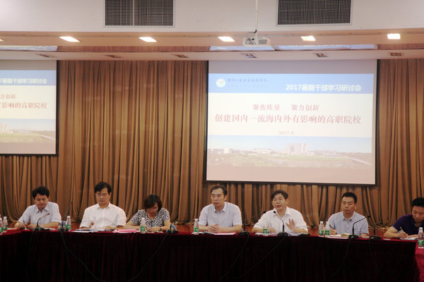 8月22日至24日,我校召开了2017年暑期干部学习研讨会。本次学习研讨会以“聚焦质量,聚力创新,创建国内一流海内外有影响的高职院校”为主题,深入实施“十三五”发展规划,统筹推进省卓越高职院校建设,进一步明方向、摆问题、找差距。全体校领导和中层干部参加了学习研讨。