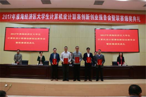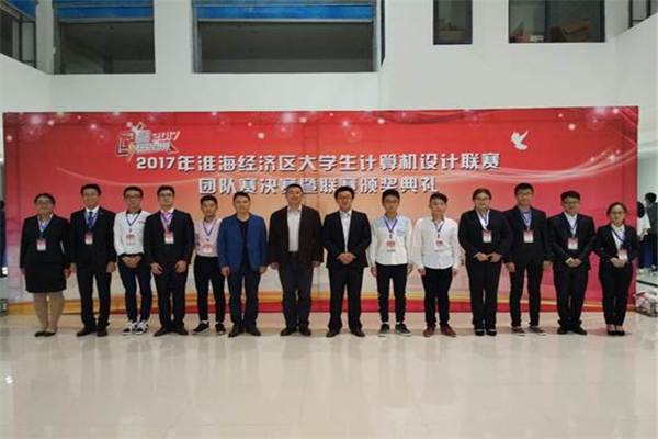 2017淮海经济区大学生计算机设计联赛是“创响江苏”创新活动月和“赢在徐州”创新创业大赛的分赛事之一。范围涉及到淮海经济区14个市,共有25所高校、36件团队赛作品参赛。我校选手凭借优秀细腻的策划、精湛过硬的技术、坚毅踏实的精神,在学院领导的鼓励以及指导教师的悉心指导下,由陈祥章老师指导的孙朝阳同学获得个人赛特等奖,王鸿磊老师指导的竞赛团队荣获团队赛一等奖,龙浩老师指导的竞赛团队荣获团队赛二等奖,宋培森老师指导的竞赛团队荣获团队赛三等奖。