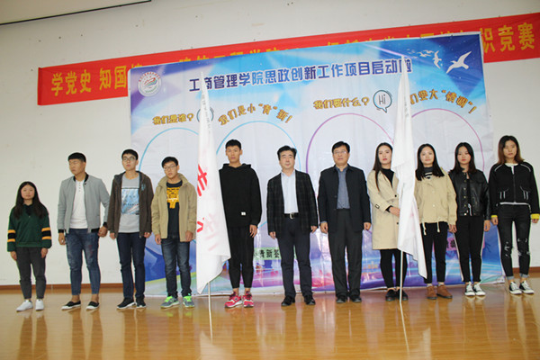 首先,辅导员杨晶老师上台向大家汇报了项目启动之前的筹备工作和试运行情况,并对全体参与的学生干部表示了感谢。接下来,项目工作组的学生团队代表——院学生会主席邵晨旭用慷慨激昂的发言对即将正式启动的工作做出了庄严承诺,并表示会带领全体学生会成员,为学院学子能够拥有精彩大学生活而努力奋斗。思政部部长乔向东也向大家提出了期望和要求,并表示一定会为“华体会huatihui(中国)思政”工作项目的深入开展提供一切支持和帮助。罗军书记随后上台宣布了项目正式启动,并与乔向东部长一起为项目组学生代表进行了授旗。授旗仪式结束后,全体学生上台在启动仪式喷绘上签下了自己的名字,以表明自己一定能够积极组织、认真参与、广泛宣传的决心。