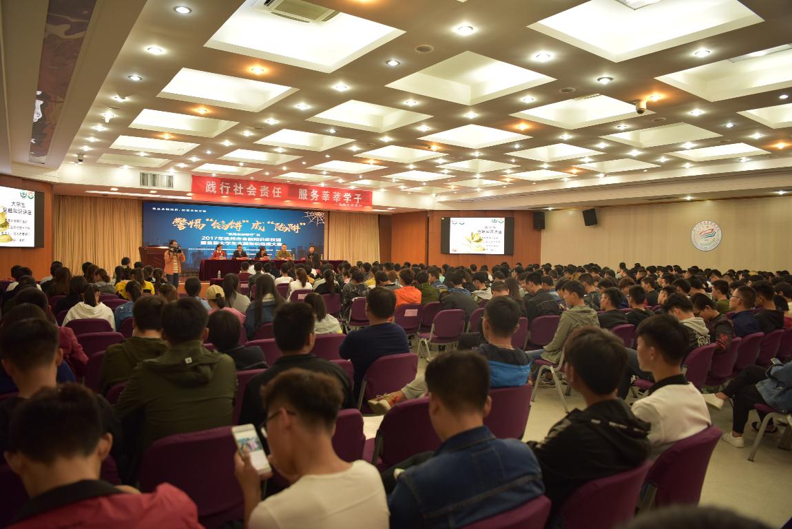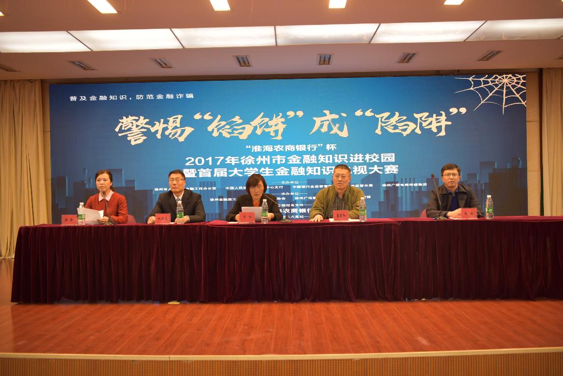 为进一步教育引导我校学生增强金融风险防范和安全意识,提高自我保护能力,同时认真贯彻落实国家、江苏省相关通知精神。10月26日下午,我校和徐州广播电视传媒集团、相关金融机构共同举行2017年徐州市金融知识进校园——徐州工业职业技术学院专场宣讲会。校党委副书记李红、淮海农商银行监事长、纪委书记胡居友、徐州广电报网传媒有限公司副总编辑惠龙和、君康人寿保险股份有限公司徐州中心支公司总经理朱骏、学工处副处长安莹和6个学院新生辅导员及300余名学生参加了本次宣讲活动。