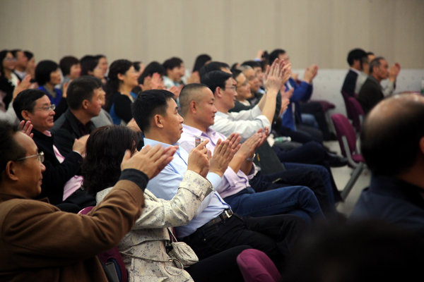 班主任代表季剑波老师用“缘分、成长、共享、祝愿”四个关键词激情洋溢、声情并茂地总结和抒发了一名班主任对待学生的真情实意,他期望彼此珍惜缘分、共同成长,资源共享,祝愿学校和校友明天更美好!