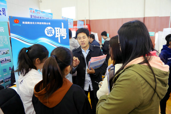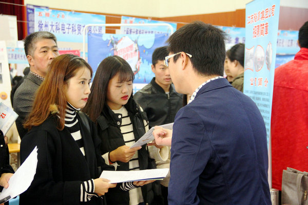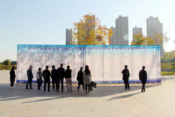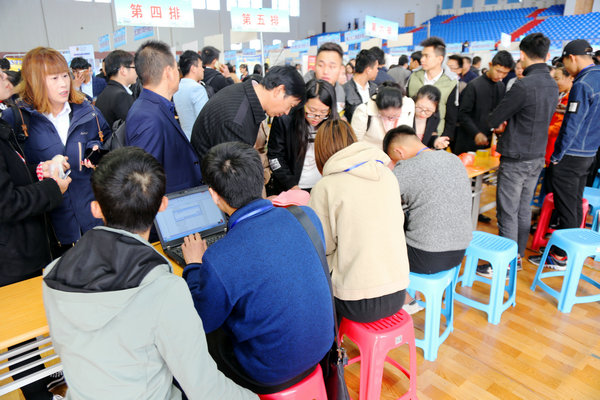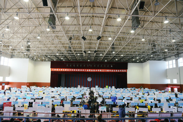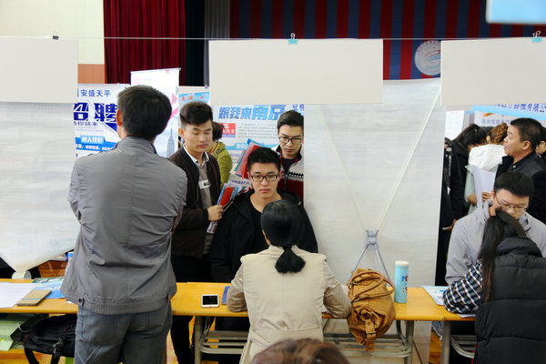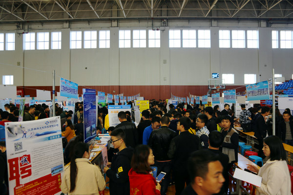较往年,今年双选会呈现以下几个特点:一是参会企业数量再创历史新高,据统计,意向报名企业达700余家,因受场地及规模的限制,经过层层筛选,最终确定410家企业参加双选;二是企业岗位数量有大幅增加,相比去年,本次双选会岗位增加近2000个;三是参会企业质量也有明显提升。本次双选会吸引了众多诸如中国人寿、中储粮油、青岛海信、青岛海尔、菲尼萨光电、中电熊猫、大地财产等国有企业,也集聚了许多和学校合作过的如徐轮橡胶、南京奥特佳、天道装饰、新浦化学等紧密型合作基地、知名企业;企业提供岗位除基层一线岗位以外,其中还不乏技术骨干、工程师、设计师、储备干部、研发人员等高薪岗位。四是校地合作成效日益凸显。鼓楼区人社局、苏州工艺园区培训中心以及昆山市人社局带领企业近100家组团前来招聘,成为了双选会的一大亮点。