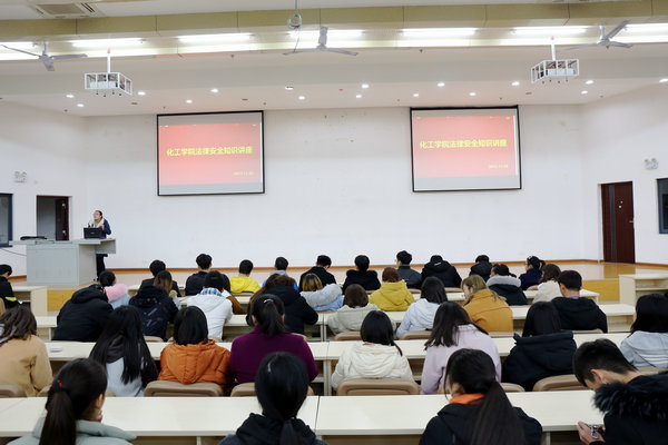 11月30日,化学工程学院在B18-F201举办法律安全知识讲座,讲座邀请中国政法大学法学博士,江苏师范大学法学院张杰老师作为主讲人,面向化学工程学院2017级全体同学,针对当代大学生身边经常发生的一些法律安全问题及防范措施,与同学们进行了深入的交流和探讨。