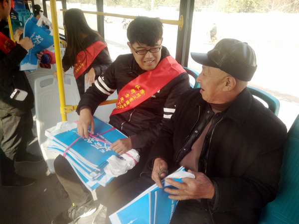 为庆祝党的十九大顺利召开,在第31个国际志愿者日来临之际,由信息与电气工程学院20名青年志愿者组成的党的十九大公交车宣讲团,利用课余时间,开展了为期一周的公交车宣讲活动。他们以“不忘初心,砥砺奋进”为主题,将党的十九大精神以浅显易懂的语言带入群众中,广受好评。