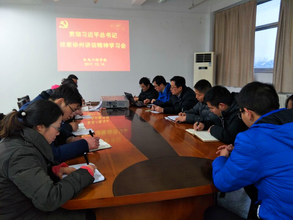 12月14日下午,机电学院部分教师和学生代表在B16-305召开学习贯彻习近平总书记考察徐州讲话精神学习会。首先大家一起再次收看了习近平总书记考察的华体会huatihui(中国)报道,随后与会人员从个人思想、工作、学习实际出发,畅谈如何学习贯彻习近平总书记此次的考察精神。