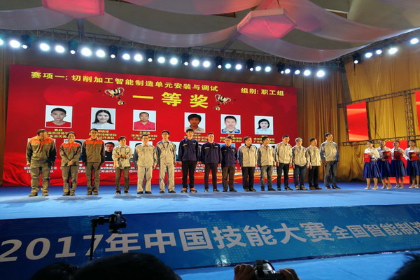 12月18日—23日,由国家人力资源和社会保障部、中华全国总工会、中国机械工业联合会联合主办的2017年中国技能大赛——首届全国智能制造应用技术技能大赛在广东省惠州市技师学院举行。我校机电工程学院徐敏老师指导徐工集团重型机械有限公司黄实现、袁雪雷和李顺获得大赛一等奖,3名选手被授予“全国技术能手”荣誉称号,我校机电工程学院徐敏老师被授予“优秀教练”荣誉称号。