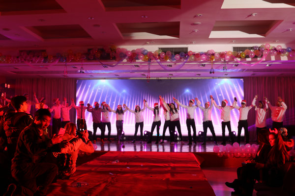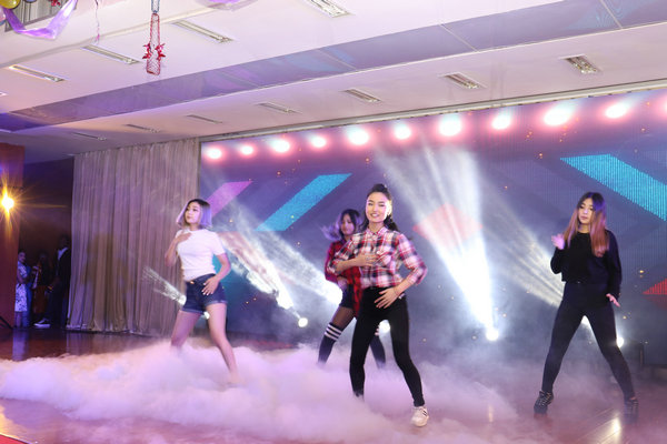 哈萨克斯坦的同学也不甘示弱,她们为晚会带来了劲爆全场的热舞表演。明快的肢体节奏,配合着双手的游移;鲜明的躯体扭动、配合着双脚的律动,在时而热力四射,时而劲爆欢快的舞曲伴奏下,将晚会带入了高潮。