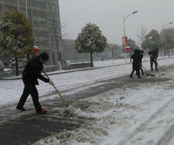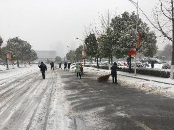 通过大家齐心协力,共同努力,在上班前为主干道、教学楼、食堂等清理出一条通道,确保了师生出行安全。