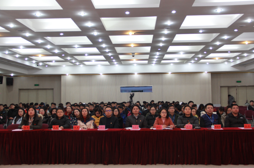 为扎实推动党的十九大精神学习宣传贯彻全覆盖,进一步深刻领会、全面把握党的十九大精神的实质和丰富内涵,1月4日下午,我校在图书馆报告厅隆重举行“牢记时代使命,书写人生华章”学习宣传贯彻党的十九大精神优秀辅导员校园巡讲。副院长朱作付出席活动并讲话,学生工作处处长张海波、团委书记张妍妍、学生工作处副处长安莹、二级学院教育管理运行副院长、辅导员老师以及学生党员、学生干部300余名参加了此次活动。活动由学生工作处缪斯老师主持。