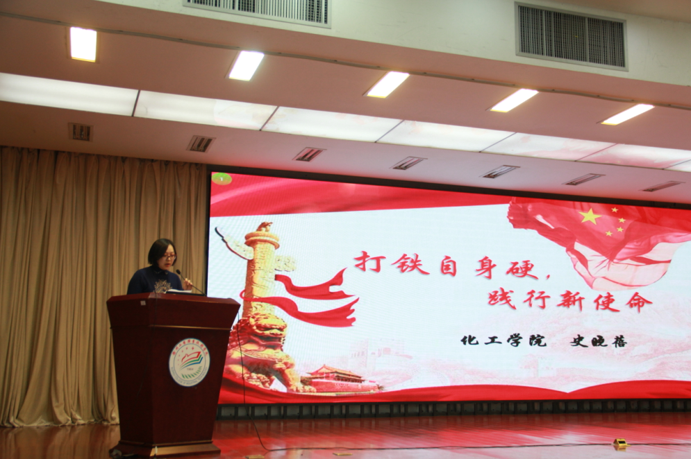 随后,工商管理学院杨晶、材料工程学院黄艳永、化学工程学院史晓蓓、信息与电气工程学院庞世华、建筑工程学院郝红艳等五位辅导员分别以《新思想引领新时代、新青年共筑复兴梦》、《砥砺奋进路,迈向新征程》、《打铁自身硬,践行新使命》、《聚焦新时代,筑梦新征程》、《拥抱新时代,绽放新精彩》为主题作了精彩纷呈的报告。他们结合国家的发展、个人的成长、青年学生的兴趣点,运用大量鲜活而又接地气的案例,点面结合、深入浅出地讲解和传达了党的十九大精神,展示了理论中国、信仰中国、文化中国、美丽中国的精彩故事,获得在场师生的共鸣,会场想起热烈的掌声。
