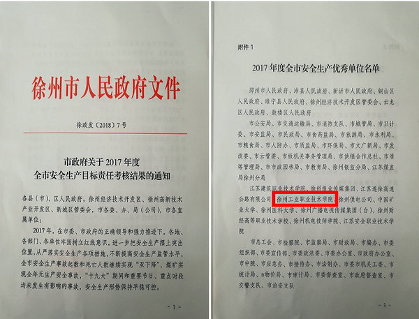 金鸡辞旧岁,瑞犬踏春来。在喜迎新春之际,从徐州市安全生产工作会议上传来喜讯,我校被市政府评为“2017年度全市安全生产优秀单位”。2017年在市委、市政府的正确领导和强力推进下,在学校党政班子的带领和全力贯彻下,全校上下牢固树立红线意识,从严落实各项安全工作任务,确保师生安全、校园稳定,为学校的改革发展打下了坚实的基础。