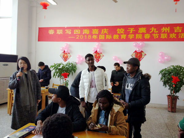 据悉,今年学校共有245国际学生寒假留校,为了丰富他们的寒假生活、促进其对中国文化的进一步了解,除了此次联欢活动之外,国际教育学院还为他们举办了诸如足球、羽毛球、汉语言文化培训班等一系列丰富多彩的文化体育活动,极大的丰富了留学生的寒假业余生活。