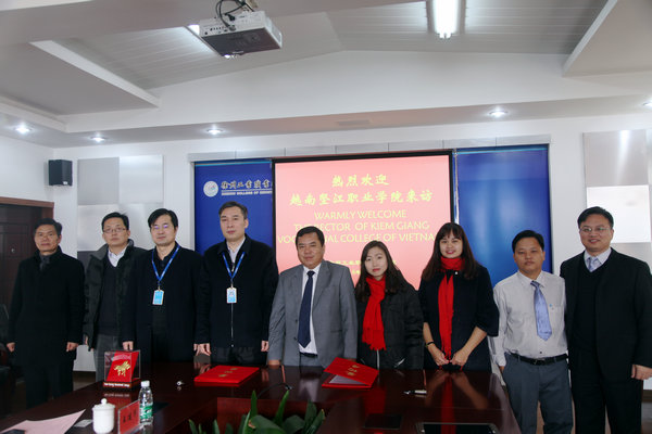 近日,越南坚江职业学院书记兼校长Nhan Thanh Liem教授一行三人访问了我校,随行的有国际交流处处长Le Quang Nha和酒店管理系主任Nhung。我校党委书记祝木伟、副院长张芳儒会见了来宾,机电工程学院院长吉智、工商管理学院院长张恒中、外事办副主任王建华,以及在我校交流学习的越南坚江职业学院教师代表Niki参加了会谈。