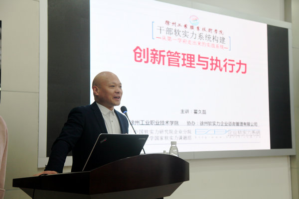 随后,徐州软实力咨询管理有限公司总经理霍久磊为与会干部开展创新管理与执行力专题培训讲座,霍总从干部软实力系统构建的角度,围绕创新思维、团队协作、执行力和绩效评价等方面与大家进行了深入交流和“头脑风暴”,进一步开阔了大家的工作思路和创新视野。