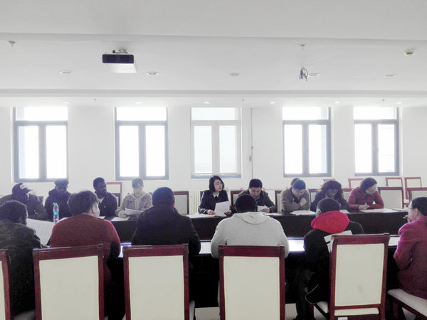 王艳秋院长首先介绍了进入专业学习的留学生名单以及所申报专业的情况,17名留学生在2017年共申报了工商管理学院、信电学院、建筑学院和机电学院10个专业。学院要求留学生先到所选专业试读1周,1周后进行测试,然后学院将根据留学生专业学习反馈情况,在综合考虑学生的学习能力和顺利完成学业的基础上,建议留学生成班制学习,个别学习能力强的学生插班学习,满足留学生专业学习要求的要求。