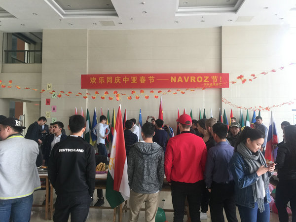 美食飘香,花团锦簇,载歌载舞,欢聚一堂。3月22日,是中亚民族的传统春节—那吾肉孜节,国际教育学院的老师和百余名中亚斯坦国同学身穿节日的盛装,欢聚在B18楼大厅,共同庆祝他们民族的节日。