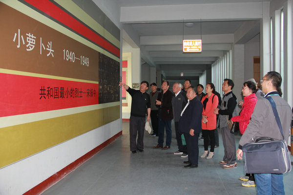 退休支部党员第一站首先到达邳州巨山脚下“小萝卜头”纪念馆,通过观看《小萝卜头的故事》剧照、“小萝卜头”——宋振中及父母被捕后惨遭迫害的图片200余幅和部分实物,党员同志近距离地了解了宋振中这位共和国最年轻的革命烈士的英勇事迹,都被宋振中一家在恶劣的政治环境和艰苦的生活条件下表现出的坚贞不屈、英勇斗争的精神深深感动。观看完英雄的事迹,党员们感慨新中国的来之不易,正是以小萝卜头一家为代表的千千万万烈士的牺牲,才换来我们今天幸福生活,值得永远缅怀。