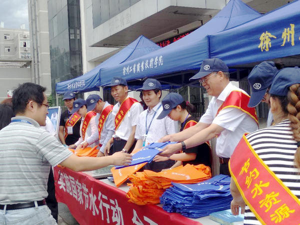 为全面贯彻习近平总书记华体会网页版节水优先方针的重要论述,落实党的十九大华体会网页版实施国家节水行动的部署以及省、市有关节水行动, 5月16日上午,徐州市水务局联合我校在第二食堂东广场开展了以“实施国家节水行动,让节水成为习惯”为主题的“2018年全国城市节约用水宣传周”活动。水务局相关领导、副院长朱作付、国有资产管理与后勤服务中心副主任杨宏楼、刘继峰等参加了活动。