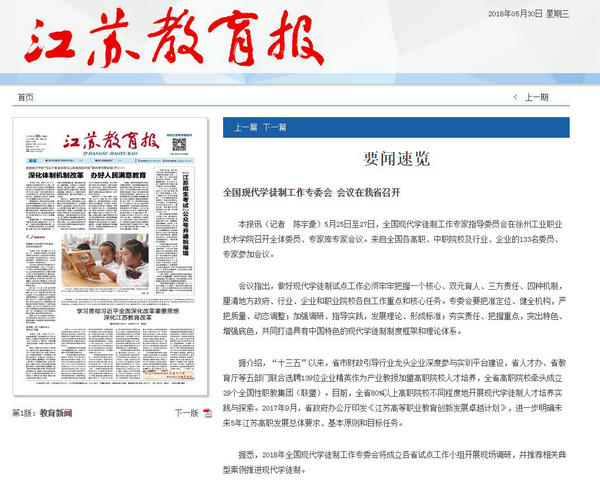 5月25日至27日,全国现代学徒制工作专家指导委员会在徐州工业职业技术学院召开全体委员、专家库专家会议。来自全国各高职、中职院校及行业、企业的133名委员、专家参加会议。
