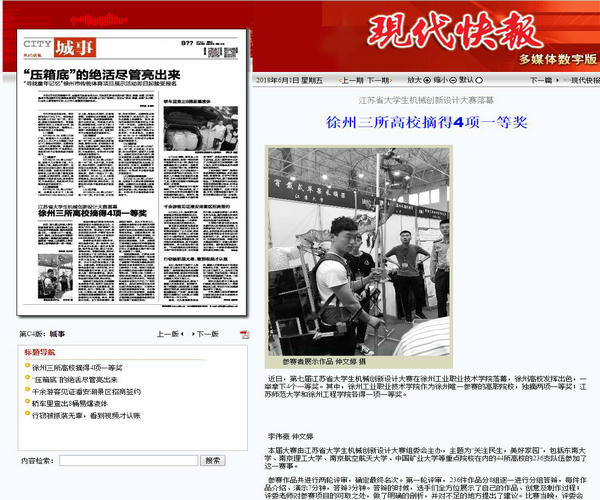 近日,第七届江苏省大学生机械创新设计大赛在徐州工业职业技术学院落幕,徐州高校发挥出色,一举拿下4个一等奖。其中,徐州工业职业技术学院作为徐州唯一参赛的高职院校,独摘两项一等奖;江苏师范大学和徐州工程学院各得一项一等奖。
