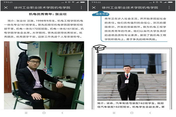 为深入学习宣传贯彻党的十九大精神,以习近平新时代中国特色社会主义思想为指引,进一步加强对全院广大青年的理论武装和思想引导,根据徐工职院团发〔2018〕10号《华体会网页版开展“青年大学习”行动的通知》的要求,机电工程学院以五四表彰为契机,选树标杆,以“我们身边的好青年”为主题,广泛开展青年典型故事分享活动,引导广大青年见贤思齐,砥砺前行,谱写美好人生篇章。