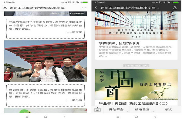 学院通过新媒体平台开展“我的工院变形计”、“学弟学妹我想对你说”等线上互动活动。通过展示大学入学与毕业时的对比照片,呈现大学三年成长蜕变的精彩历程,表达对自己、对同窗、对即将入校的2018级学弟学妹的祝福以及对学校、对国家未来的希望与憧憬。