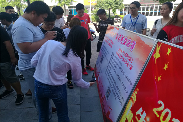 为了提高师生的参与率,扩大宣传效果,保卫处于2018年6月13日下午,在学校警务室前举行“安全生产知识有奖竞答”现场答题活动。本次活动由校卫队协办,采用网上与现场相结合的形式,观看安全知识宣传展板,并通过PU平台报名,完成网上有奖答题后予以验证,共计千余人次获得PU实践学分。通过现场活动,提高了同学们参与的积极性,增强了同学们对安全生产知识的了解和掌握。