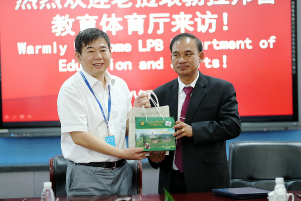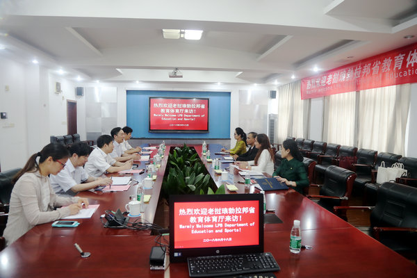 6月18日,老挝琅勃拉邦省教育与体育厅副厅长翁撇·欧段力带领行政处副处长达文·希体彭、职教处安派婉·苏达基、外事处副处长蒂法瓦恩.杜瓦利亚科一行4人访问我校,我校党委书记祝木伟、院长张登宏、副院长张芳儒及相关部门负责同志热情接待了来宾。