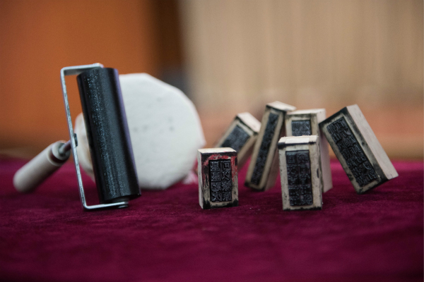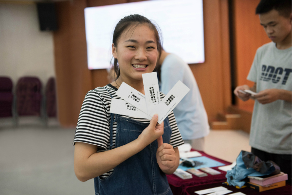 活字印刷▪传承红色精神体验活动中,同学们现场体验字模排版、涂墨、印刷等传统活字印刷术的主要流程,将具有时代代表性的诗词、名言等印制在书签上,传统与现代结合,传承红色精神之外也使同学们感受到传统文化之美。