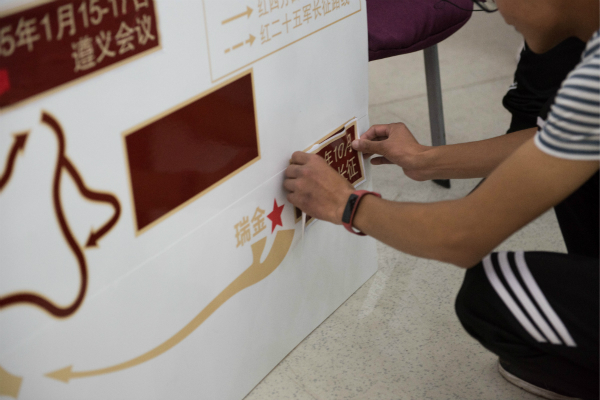 本次活动包括三项内容:团总支书记讲述党史故事、活字印刷▪传承红色精神体验活动和党史知识竞答。其中,团总支书记讲述的党史故事包括六个主题——“一大首聚 开天辟地”、“北伐洪流 铁军扬名”、“万里长征 三军会师”、“会聚七大 确立指针”、“战略决战 解放中国”、“挺立潮头 开创时代”,以时间轴为线,向同学们讲述了建党初期、国民革命、红军长征、抗日战争、解放战争、党的十九大等党的发展历史中的重大事件。除了聆听团总支书记的讲述,同学们还通过现场互动的方式,亲手在展板上标注红军长征途中的重大事件节点、十九大报告中提出的发展规划等,使得同学们对党的重大历史事件实现更直观的了解。