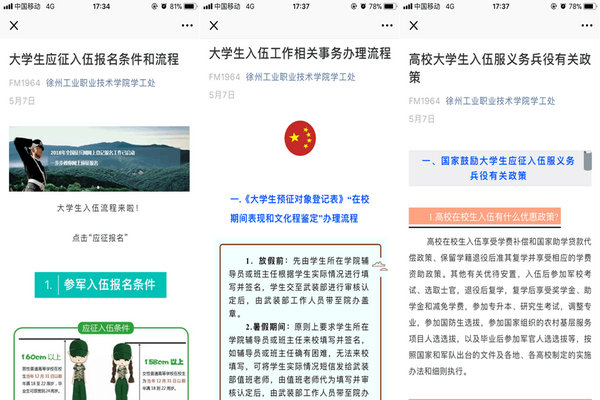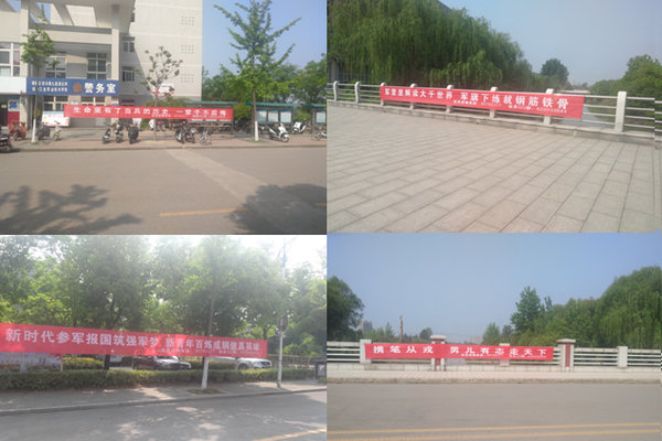 按照“全员动员,全面覆盖,创新手段,突出重点”的原则,征兵宣传季期间,武装部牵头组织各二级学院面向全校学生组织开展了“八个一”的主题宣传活动,即通过在学生学习生活聚集区悬挂一批征兵宣传横幅、展出一批征兵宣传海报;利用学生班级QQ群向学生推送一条应征入伍动员信息,依托学工处和各二级学院官方微信平台向学生推送了一组华体会网页版应征报名流程和各项优抚优待政策等方面的宣传微信;向各班级发放了征兵宣传单,并组织各班级召开了一次应征入伍主题班会;在毕业生返校期间组织了一场集中征兵政策现场咨询活动,线上线下组织开展了一次退役优秀大学生士兵宣树活动。
