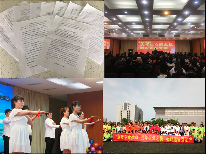 “绘”美好青春,展现青春风采。为引导学生发现生命的美好,了解生命的意义和价值,我校积极组织开展校园心理情景剧表演、心理素质拓展训练、最美微笑摄影展、心理趣味运动会等学生参与性强、参与度高的体验式教育活动,引导学生在青春中飞扬、在活动中成长,展现了大学生的青春新风貌,弘扬了大学生的青春正能量,使学生们体会到青春年华里如何用理性的判断去创造、如何用健康的人格去征服、如何用美好的心灵去生活。