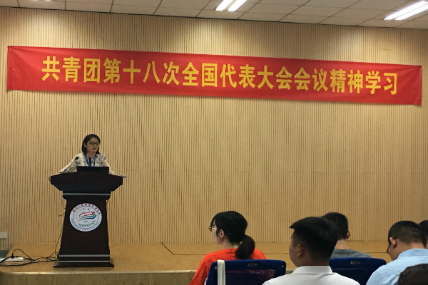 中国共产主义青年团第十八次全国代表大会于6月26-29日在北京召开,为深入学习贯彻并宣传团的十八大精神,7月6日下午,我校团委在教师发展中心报告厅举行共青团第十八次全国代表大会会议精神学习活动,共青团第三届委员会委员、团委工作人员、各学生组织负责人参加了此次活动,校团委书记张妍妍主持学习。
