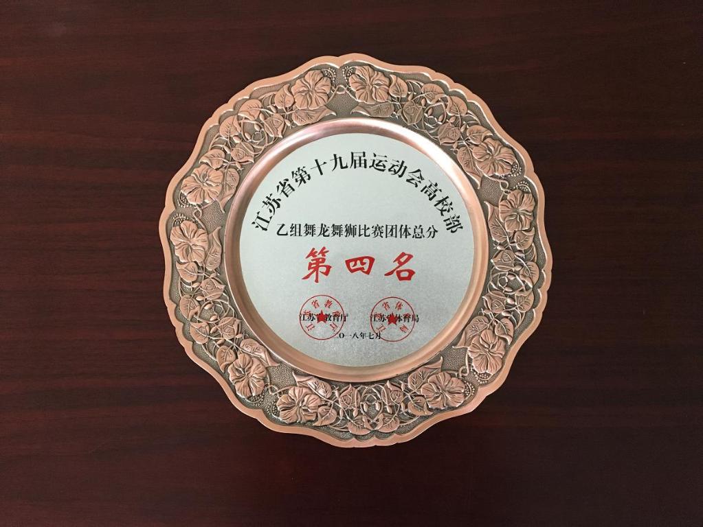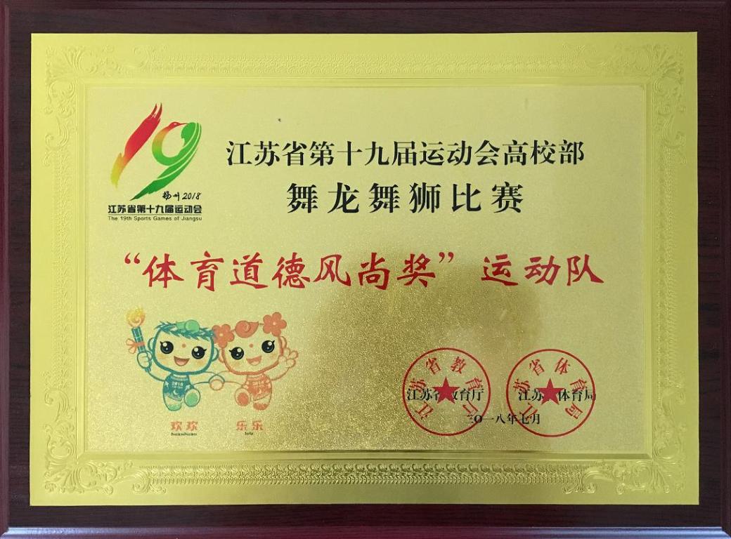 7月14日,江苏省第十九届运动会高校部舞龙舞狮比赛在扬州工业职业技术学院圆满落幕。来自全省24所本专科院校400多名运动健儿参加了本届比赛。经过激烈的角逐,我校代表队最终获得团体总分第四名的好成绩,并荣获“体育道德风尚奖”荣誉称号,为我校征战江苏省第十九届运动会画上了圆满句号。