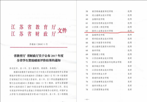 7月11日,江苏省教育厅、江苏省财政厅联合下发了《华体会网页版公布2017年度全省学生资助绩效评价结果的通知》(苏教助〔2018〕1号),经专家组评审和省学生资助工作绩效评价领导小组审定,我校被评为2017年度江苏省学生资助绩效评价优秀单位,实现了历史性突破。