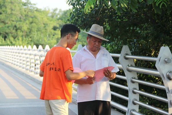 实践团成员走进居民当中,发放了“禁毒防艾”宣传单,向居民系统地讲解如何辨别和远离毒品。引导居民观看健康知识宣传栏,以此进一步增强社区居民对于“禁毒防艾”知识的了解,加强防范意识,营造健康的生活环境。