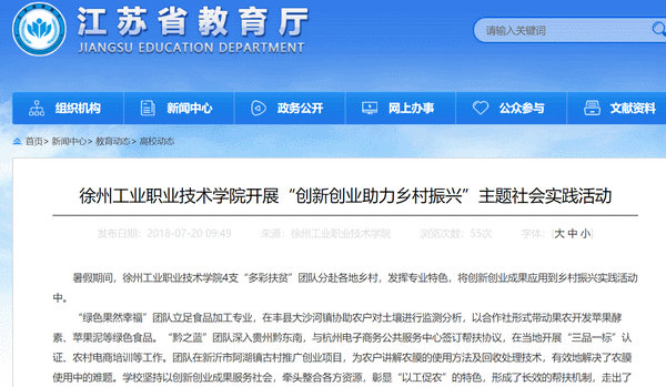 暑假期间,徐州工业职业技术学院4支“多彩扶贫”团队分赴各地乡村,发挥专业特色,将创新创业成果应用到乡村振兴实践活动中。