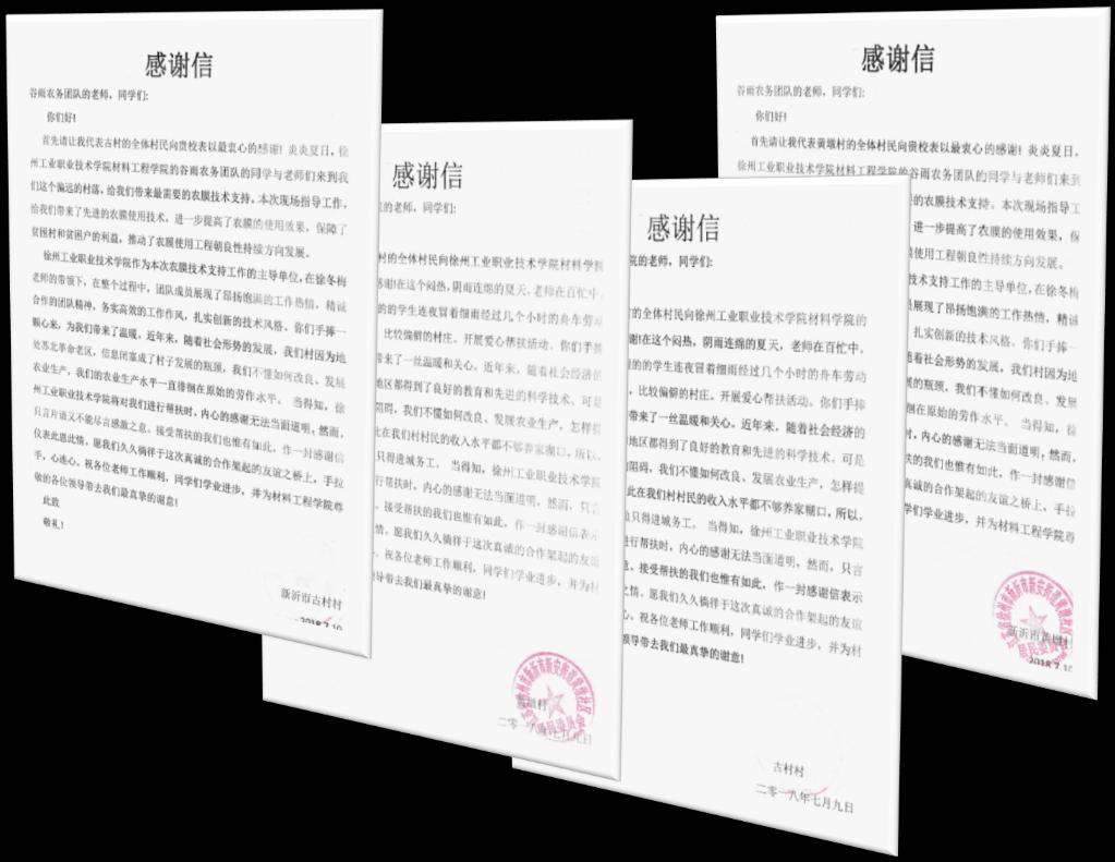 近一周的暑期社会实践,团队成员实地考察并开展了专业帮扶,为环境友好型除草地膜签署了合作协议,成功推出了谷雨农务的业务。团队成员们收获良多,内向的队员在团队的带领和驱动下,成功迈出了第一步;沟通能力强的队员则明确了责任担当,认识到只有将我们的技术做到最好,我们的服务才会更有效。纷至沓来的感谢信更加坚定了实践团队的信心,“服务乡村振兴 助力精准脱贫”的梦想定会实现!大家纷纷表示,一定脚踏实地、努力钻研专业知识,用于创新,敢于拼搏,要通过实践更好地锻炼自己,为高水平高等职业院校的建设添砖加瓦!