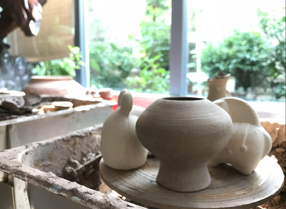 7月15日,材料学院暑期志愿者们寻访了非物质文化遗产传承人闵思凡老师,闵老师将陶器制作的前世今生的故事娓娓道来,并向实践团的成员演示陶碗、陶罐、花瓶的制作过程。在闵老师的现场讲解、示范和指导下,暑期社会实践志愿者“小青葱”们都全神贯注,从定中心、开孔、修正成型、取胚完成,一步步认真学习,个个摩拳擦掌跃跃欲试。志愿者于程千是团队中“第一个吃螃蟹的人”,可看似简单的工序,却既考验手上功夫。泥巴到了手里却不听了使唤,闵老师则在旁一边鼓励指点,一边手把手帮其纠正姿势,一只陶碗在两分钟内就诞生了。同学们其乐融融,制作现场一片欢声笑语,大家都制作了属于自己的第一份陶艺作品。