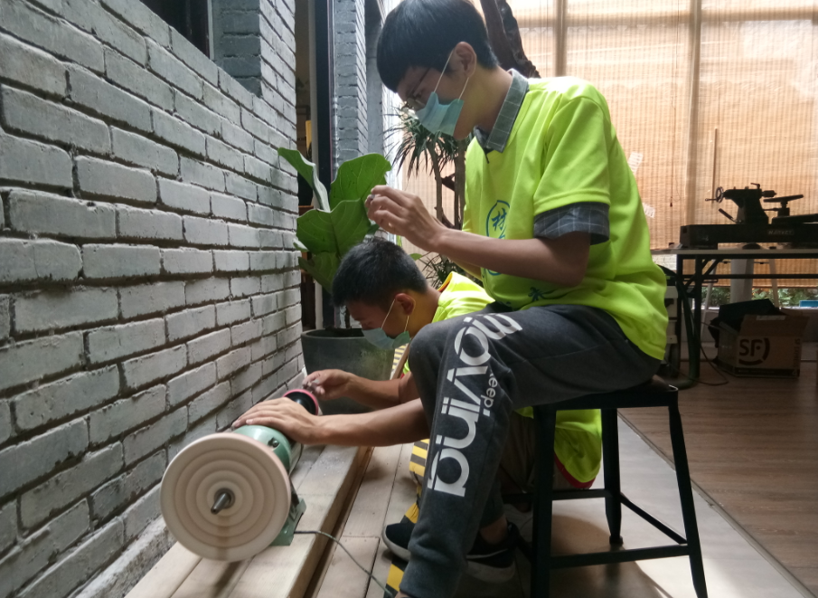 7月14日,材料学院暑期志愿者们来到了木艺制作基地, 参观了木梳、木盘、木凳等各种手工木器,并在老师的指导下参与木器的打磨与制作,志愿者“小青葱”们相互协作,将原本笨拙粗糙的木坠儿,打磨的细腻透亮,在阳光的照射下宛如一颗晶莹的露珠。