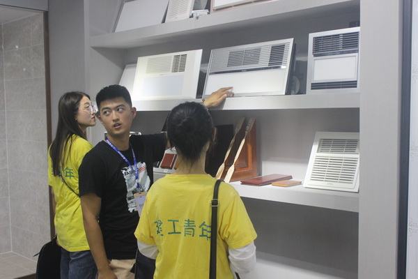 上午9点,实践团到达徐州家装文化产业园,左岸装饰何经理首先和指导老师郭瑞进行了沟通交流,之后向同学们介绍了公司的生产经营状况、公司文化、产品研发、工艺特点、销售渠道等企业现状,作了“以人为本做设计”为核心的内容报告,同时分享了在年设计工作中的感受以及经验,与同学进行亲切交流,为其解答问题。此次交谈不但让同学们开阔了眼界,更让同学们了解了在互联网下新形式的家装模式,受益匪浅。何经理讲解后,设计师辛成又带领同学们对家装行业以及家装设计的发展进行了交流了解,并参观了样板间。从瓷砖、木地板、厨房台面、卫浴设施等方面为学生们讲解了装饰材料知识,分析材料及适用风格。