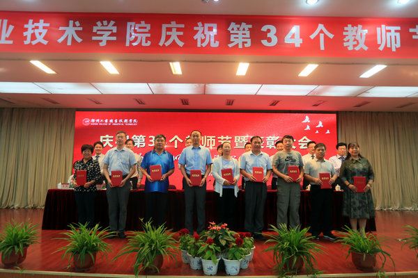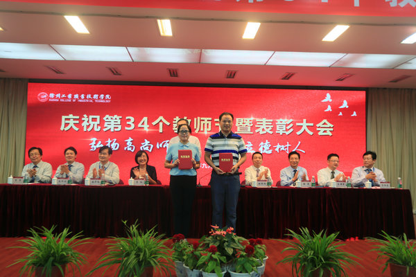 9月10日下午,我校在图书馆多功能厅召开了庆祝第34个教师节暨表彰大会。校领导祝木伟、张登宏、李红、鲍桂楠、张芳儒、徐勇、朱作付出席大会,全体教职员工参加大会。