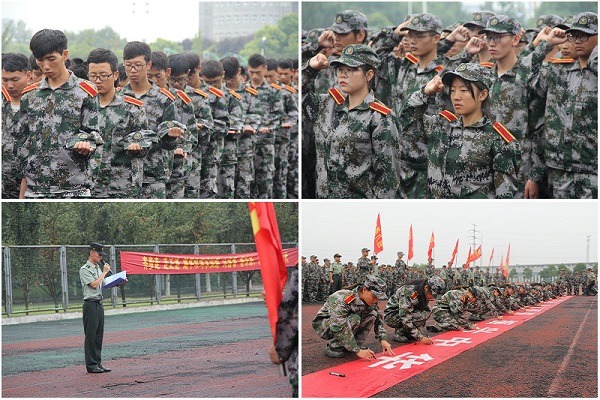 当防空警报响起的那一刻,机电学院所有大一新生在军训现场集结,集体向死难同胞默哀;默哀完毕,同学们举起拳头郑重宣誓:“铭记历史,勿忘国耻; 励志图强,振兴中华。”同学们以笔直的军姿站立,挺拔如松,字字铿锵,声音洪亮,回音久久不散。接着,军训营营长做了《勿忘国耻、振兴中华》的主题讲话,引领全体师生回顾了我们民族那段灾难深重的历史,号召大家勿忘国耻,勤奋学习,立志成才,用我们的实际行动,为中华民族的强大做出贡献;最后,辅导员、教官和学生代表在横幅郑重签名,立誓铭记“九一八”,勿忘历史。