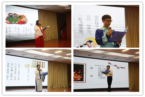 随着婉转典雅的音乐响起,诗词诵读会在杨丰宇同学的诗朗诵《朗月中秋》中拉开帷幕,他将观众带入月落平湖、秋水长天的中秋唯美意境中,细数敬畏拜月、融情赏月的传统习俗,抑扬顿挫的朗诵拨动台下观众的心弦。接着,现代诗朗诵《中秋的月》、《花好月圆夜》、舞蹈《有一个美丽的地方》诉说着月光下的温暖和感动,引发同学们对家的思念。