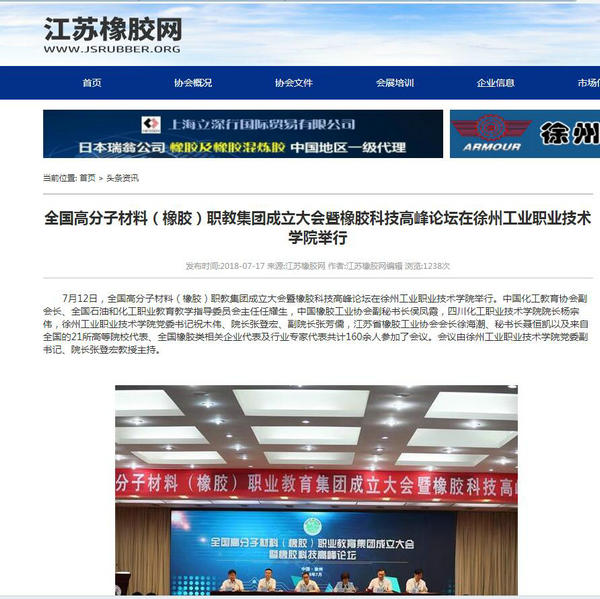 全国高分子材料(橡胶)职教集团成立大会 暨橡胶科技高峰论坛在徐州工业职业技术学院举行,橡胶技术网应邀参加本次大会。