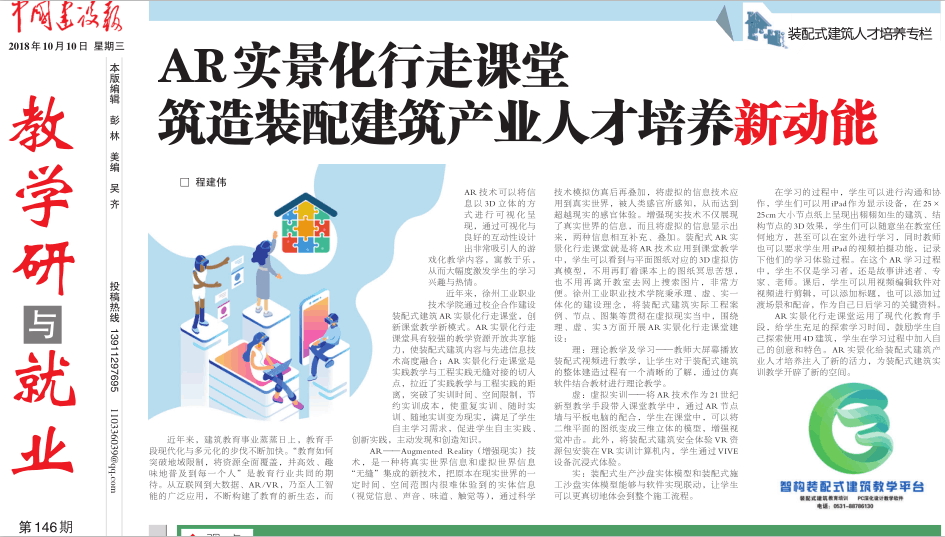 【中国建设报】AR实景化行走课堂,筑造装配建筑产业人才培养新动能!