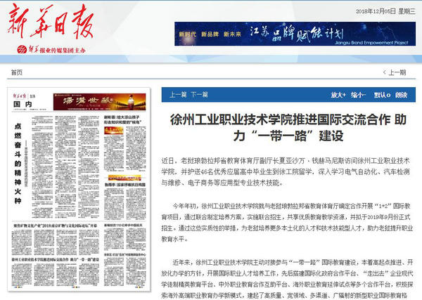 今年年初,徐州工业职业技术学院就与老挝琅勃拉邦省教育体育厅确定合作开展“1+2”国际教育项目,通过联合制定培养方案,实施联合招生,共享优质教育教学资源,并拟于2019年9月份正式招生。通过这些实质性的举措,为老挝培养更多本土化的人才和技术技能型人才,助力老挝提升职业教育水平。